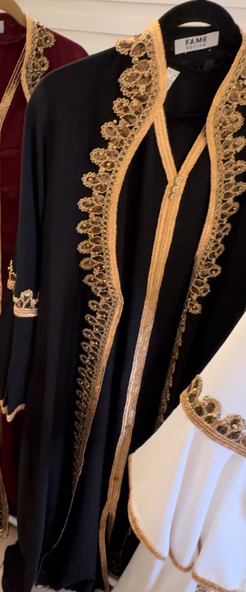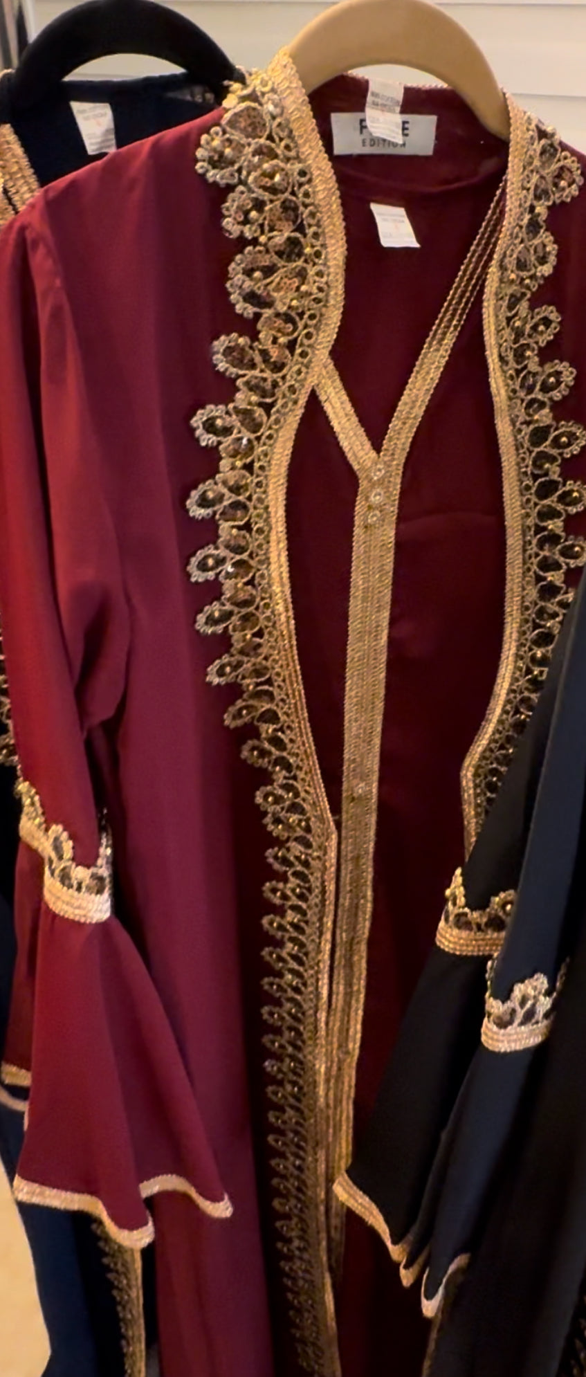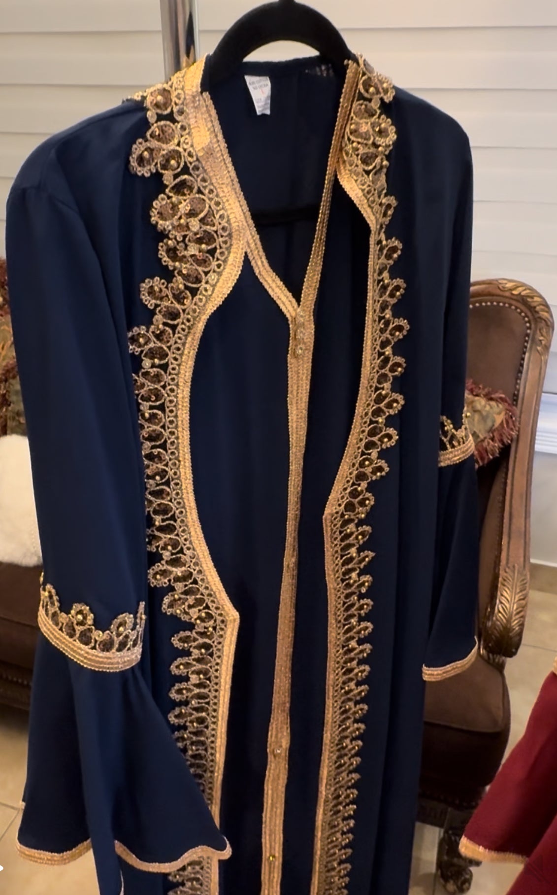 Long sleeve Kuftan with unattached under dress and gemstones belt.