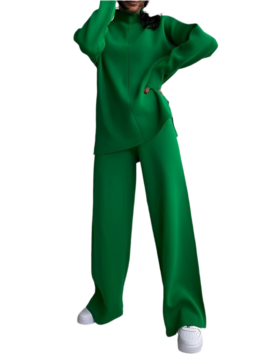 Gorgeous and sophisticated, this woman's ensemble in rich green tones consists of two pieces set. The combination exudes a timeless charm, perfect for both professional settings, daily setting, and refined casual occasions.